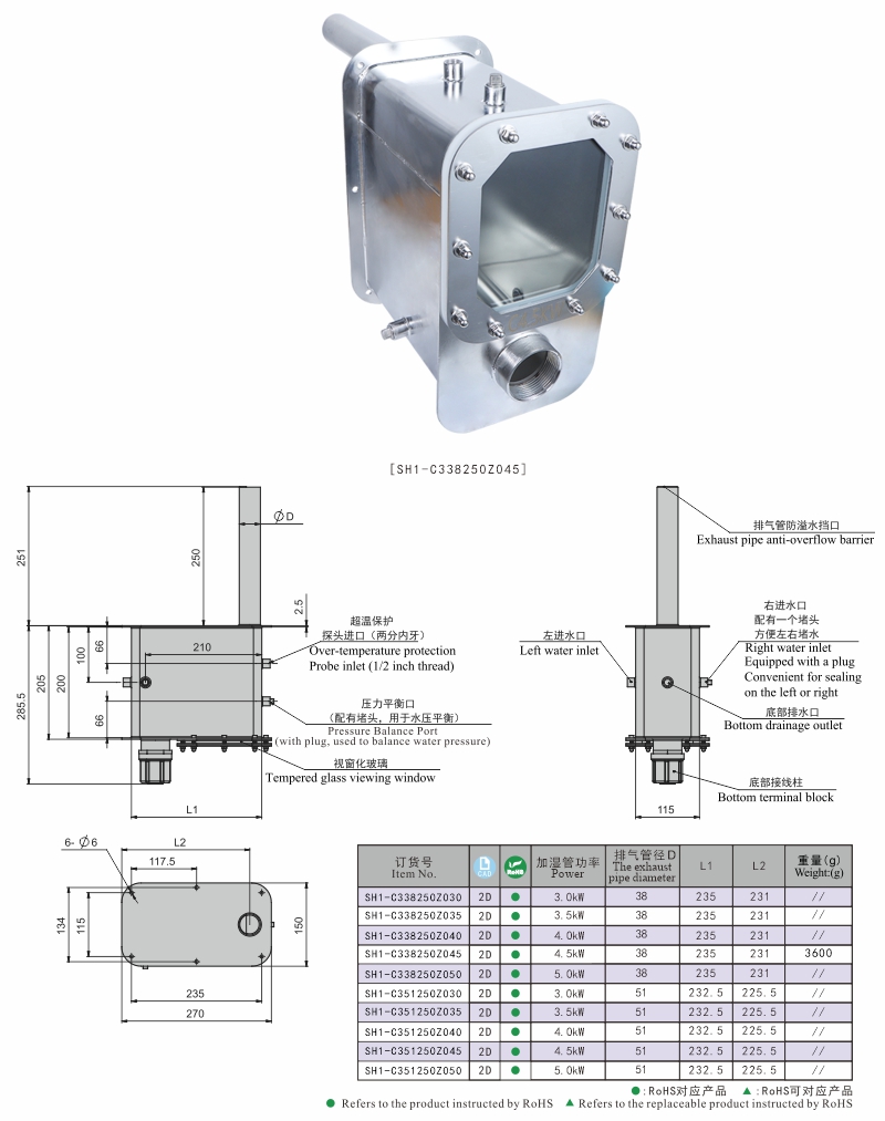 • 가습 파이프: 스테인리스(SUS316)