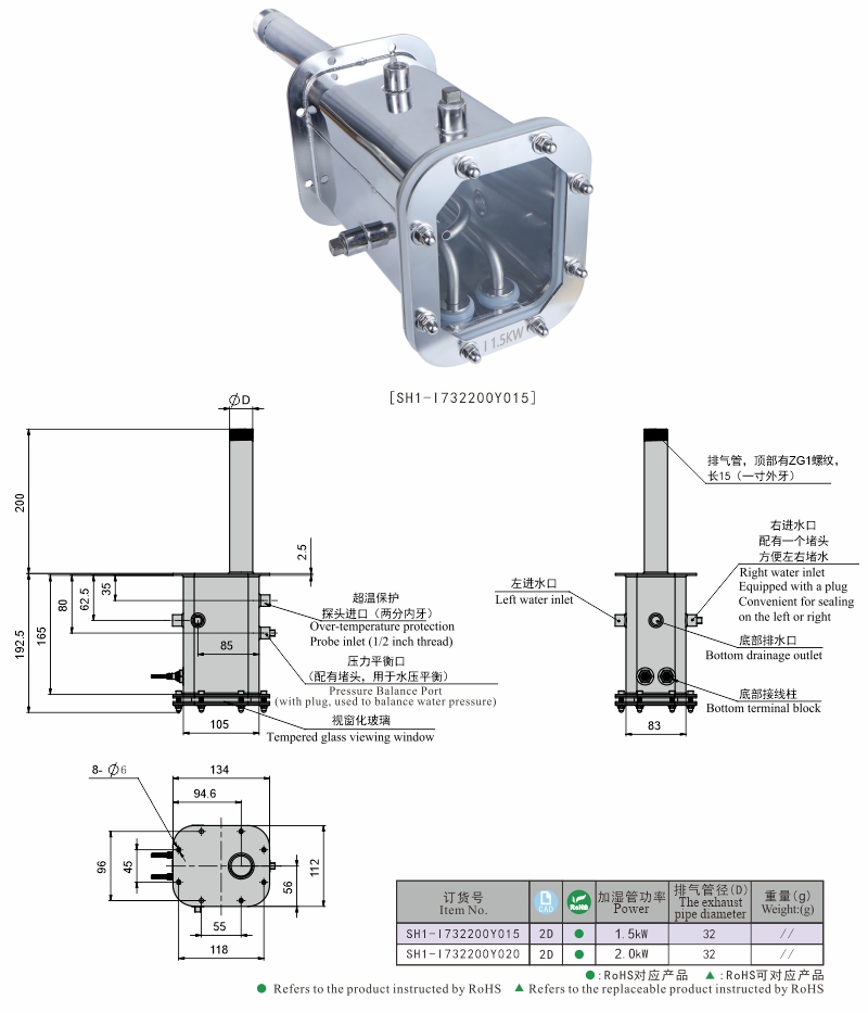 ・가습 파이프 출력 사양: 1.5kW / 2.0kW 선택 가능