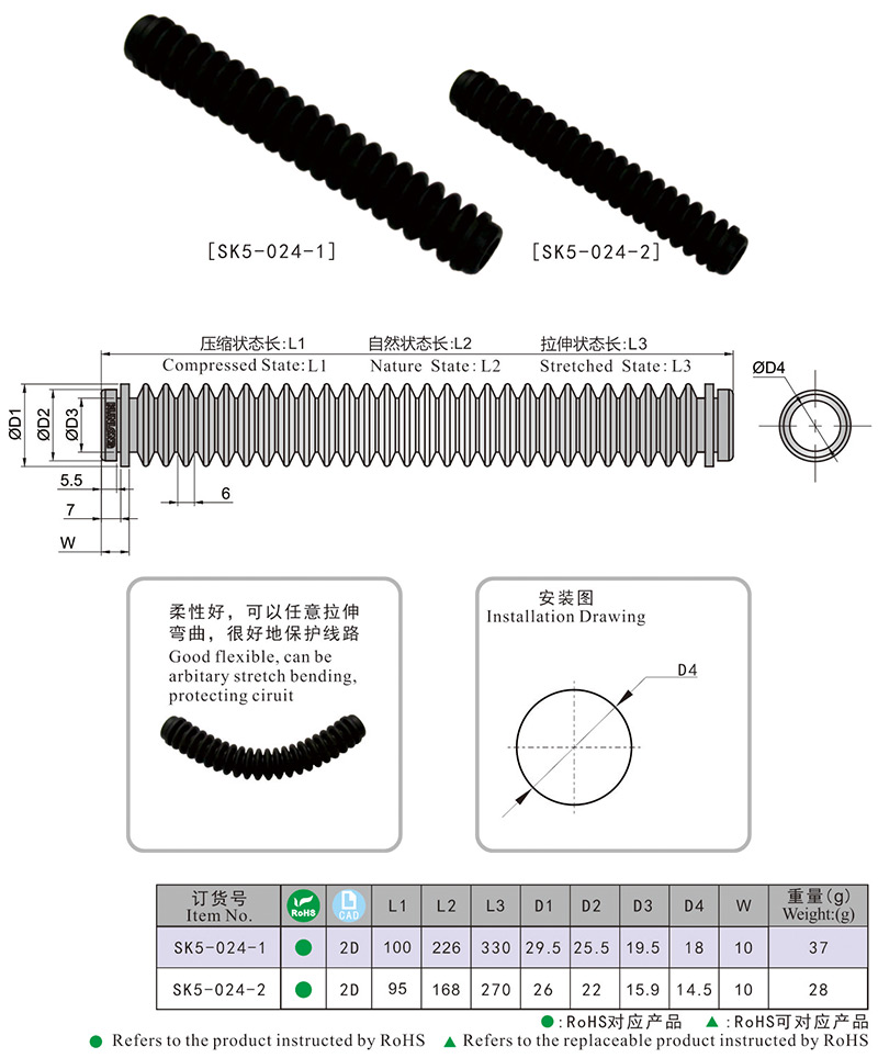 ・스프링식 주름 구조로 높은 신축성과 복원력 제공